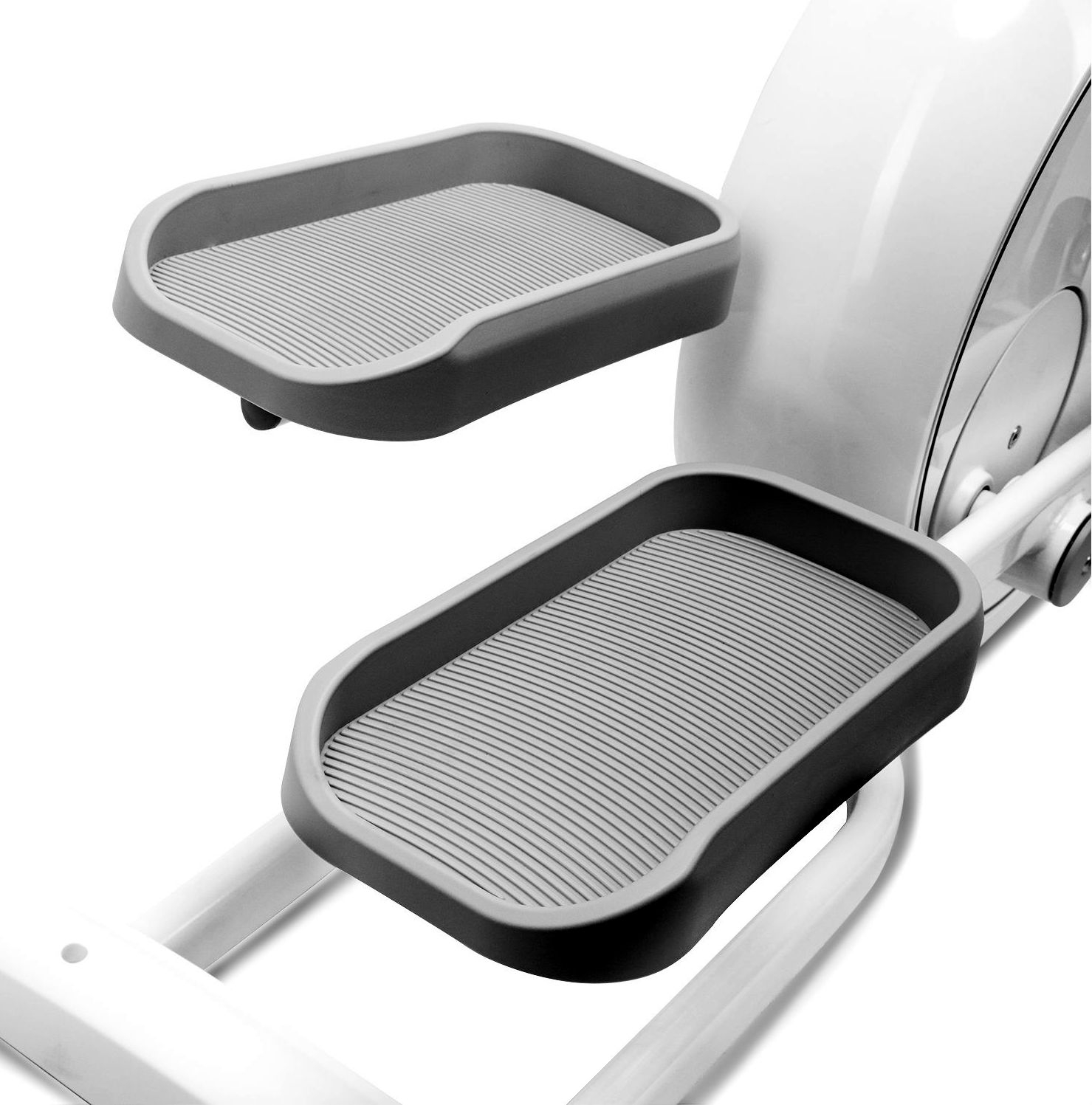 Преимущества такой конструкции заключаются в том, что пользователь шагает больше в высоту, нежели в длину, это может быть важным для тех, кто подвержен риску развития коксартроза. Также такая конструкция обеспечивает мягкое прохождение педали в нижней точке движения, без удара, который может отрицательно сказаться на состоянии суставов.