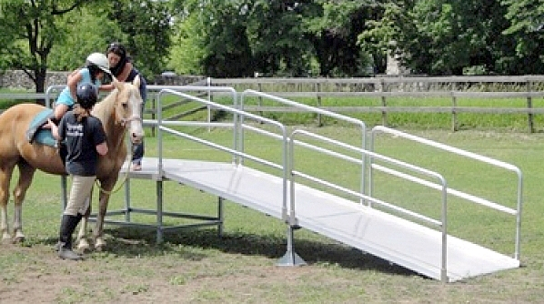 Назначение: Занятия иппотерапией - один из самых важных и эффективных видов реабилитации и спорта для людей с ограниченными возможностями. Однако зачастую такого пациента или спортсмена довольно нелегко усадить на лошадь из-за веса или навязчивых движений. В этом случае на помощь приходит специальный пандус, который позволяет завезти коляску на ту высоту, с которой пересадить его в седло не составит труда. Предназначен для использования в спортивных клубах и реабилитационных центрах.