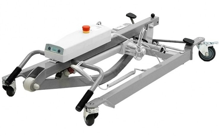 Особенность подъемника — раздвижные колеса высотой 12 см. Благодаря этому его можно легко разместить даже под низкой мебелью, чтобы удобно подобраться к пациенту. В комплекте идет съемный гамак, который используется для безопасного перемещения человека в сидячем положении.