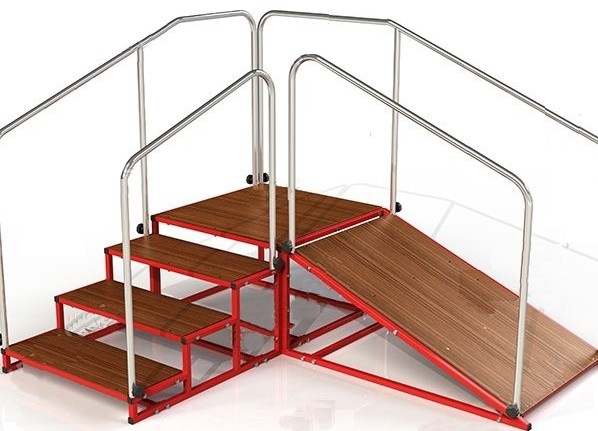 Тренажер-горка требует больше навыков владения телом, чем обычные брусья, помогает обучиться поворотам корпуса, укрепляет мышцы ног, рук и спины.