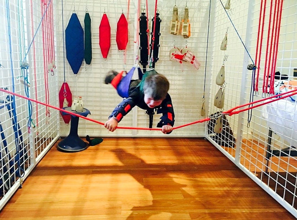 Система подвесов позволяет полностью разгрузить ребенка и позволить ему управлять своим телом для выполнения задач, назначенных физиотерапевтом, или просто играть.