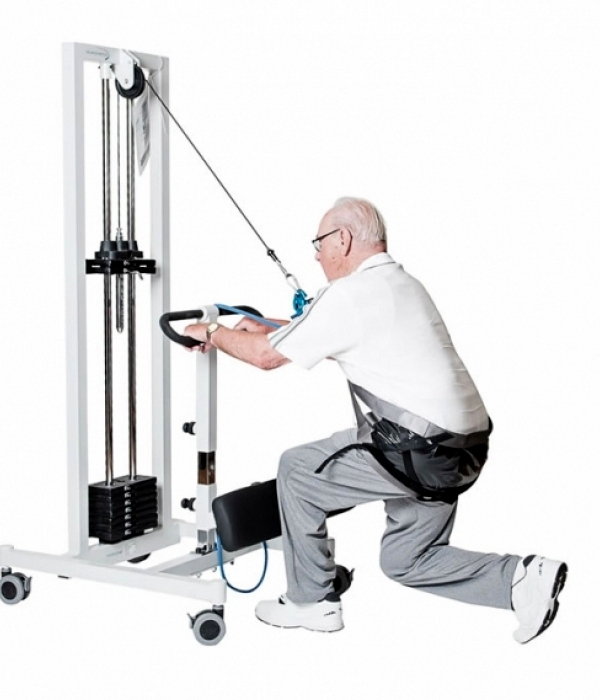 Тренажер отработки навыков вставания не требует подключения к электросети, может использоваться где угодно. Он незаменим для пациентов, проходящих курс реабилитации при неврологических заболеваниях, после травм и т.п. Помогает разгрузить часть веса для отработки навыков вставания с помощью противовеса (груза), который через блок крепится к поясу-страховке.