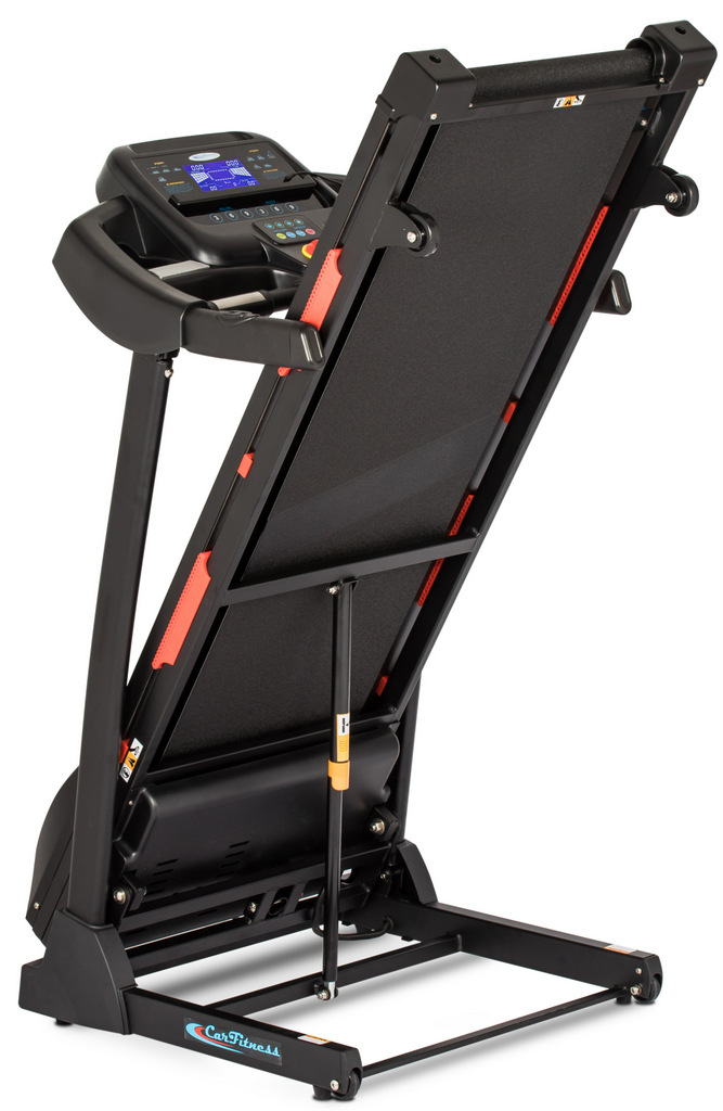 Беговая дорожка TS-1140F (производства популярной фирмы CarFitness, Тайвань) привлекает к себе внимание сочетанием весьма демократичной цены и отличного функционала. Кроме того, производитель постарался сделать эту домашнюю модель максимально удобной для пользователей.