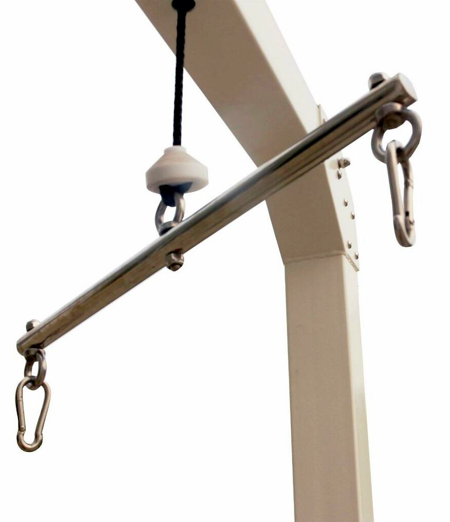 Данный подвес подходит для использования с реабилитационными беговыми дорожками, обеспечивая безопасное вхождение на дорожку и облегчая процесс ходьбы. Подвес подстрахует от случайных падений (в дополнение к поручням дорожки), поможет устранить страх перед началом занятий ходьбой лежачим больным. Может принять как полный вес пациента, так и обеспечить ему частичную разгрузку.