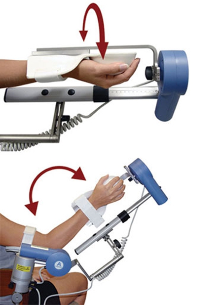 Компактный профессиональный тренажер для разработки локтевого сустава. Применяется для ранней реабилитации пациентов при травмах (переломах или ушибах) предплечья иди локтевого отростка, вывихах сустава, растяжения или надрыва связок, после хирургического вмешательства, для профилактики и устранения контрактур при длительном гипсовании конечности и т.п. Также используется для восстановления объема движений верхних конечностей при неврологических заболеваниях, нарушениях двигательной активности после инсульта, вследствие болезни Паркинсона и др. Способствует улучшению кровообращения и предотвращению деградации мышечной ткани и контрактур, особенно у спинальных и малоподвижных больных. Предназначен для использования в профильных медицинских учреждениях и на дому.